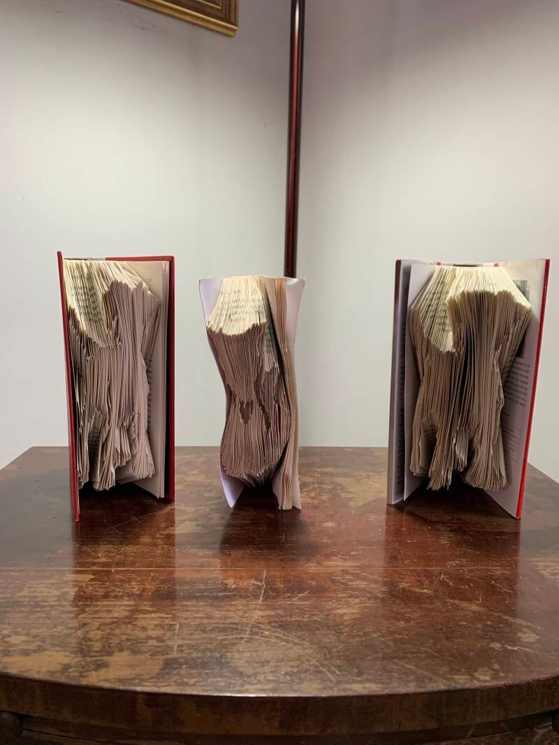 The dogs in this picture are the first method of folding that I learned. There are two measured marks on each page and the page is folded using a ruler to form the angle.